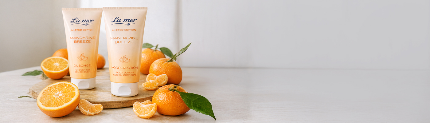 Wenn die ersten warmen Sonnenstrahlen die Haut berühren und eine sanfte Brise nach Zitrusfrüchten duftet, beginnt die schönste Zeit des Jahres. Mit der limitierten Mandarine Breeze Kollektion fängt La mer genau dieses Gefühl ein und bringt fruchtig-frische Leichtigkeit ins eigene Badezimmer. Der spritzige Duft saftiger Mandarine, verfeinert mit Bitterorange und Zitrone, erinnert an unbeschwerte Frühjahrs- und Sommertage. Wie ein belebender Spaziergang am Meer vitalisiert das Mandarine Breeze Duschgel die Sinne und schenkt neue Energie. Die perfekt darauf abgestimmte Körperlotion pflegt die Haut geschmeidig weich und hüllt sie in einen zarten, sonnigen Duft. Für alle, die das Gefühl von Sommer noch intensiver genießen möchten, rundet das Mandarine Breeze Eau de Toilette das Pflegeerlebnis ab – so verwandelt sich das Badezimmer im Handumdrehen in eine duftende Wohlfühloase.