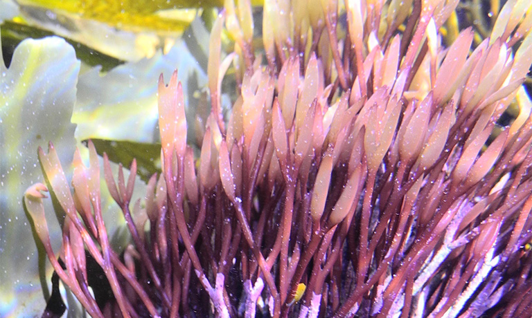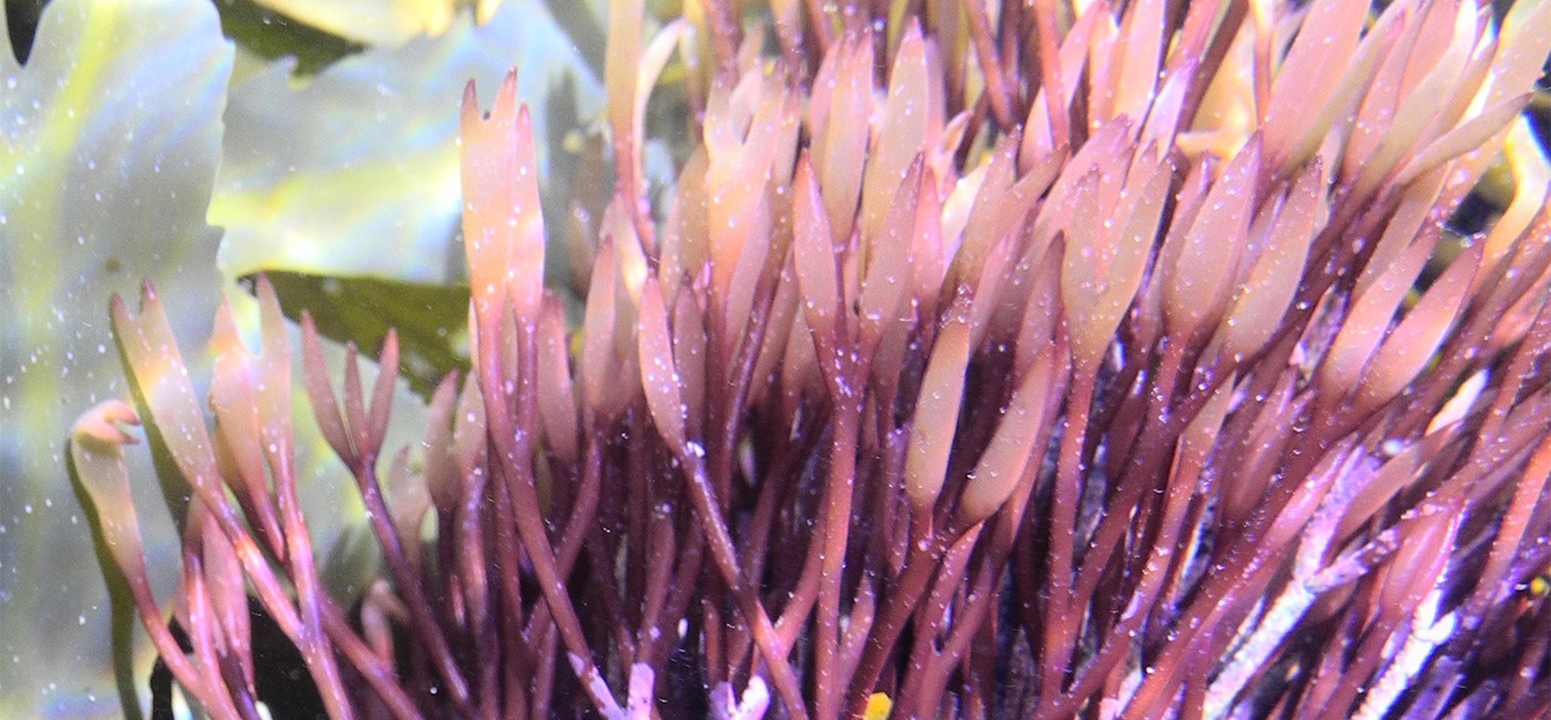 Der Purpurtang (Porphyra Umbilicalis) ist weltweit an den Meeresküsten verbreitet und kommt in polaren, gemäßigten und tropischen Meeren vor. Er besiedelt die Küsten von der oberen Gezeitenzone bis in die tieferen Gewässer und wächst auf Steinen oder größeren Algen. Der Extrakt der Alge verbessert den intrazellulären Zusammenhalt und strafft die Haut. Er restrukturiert die Zellmembranen, stärkt die Hautschutzbarriere und schützt vor transepidermalen Wasserverlust.