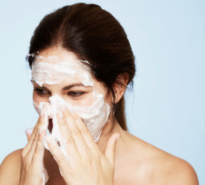 Zuerst muss die Haut auf die eigentliche Reinigung vorbereitet und vom Make-up befreit werden. Bleibt das Make-up auf der Haut, können die Poren schneller verstopfen und Unreinheiten entstehen. Auch wenn Sie sich nicht schminken, sollten Sie die Haut trotzdem von Staubpartikeln, Hautschüppchen und Bakterien befreien. Denn auch Schadstoffe lagern sich tagsüber auf der Haut ab und können ohne eine gründliche Reinigung oxidativen Stress auslösen und die Faltenentstehung damit begünstigen. Für die Vorbereitung der Haut eignet sich z.B. der Klärende Reinigungsschaum oder unser Augen Make-up Entferner.